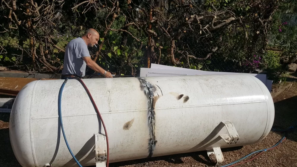Découpe d'une cuve à fioul à Bandol par l'entreprise Allo Fred.